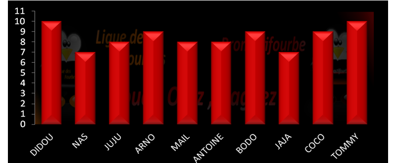 Cependant il n’est pas le seul puisque Didou aussi cartonne avec 10 points ! Il reste 3ème mais prend un point sur l’actuel leader Arno (+9).